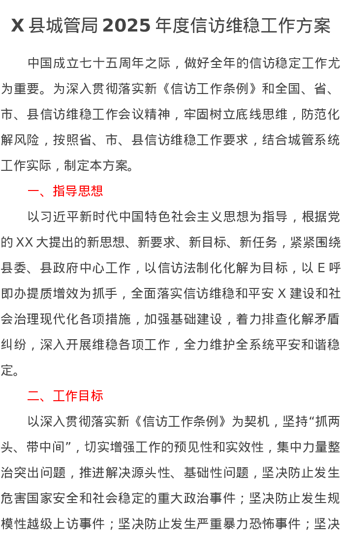 X县城管局2025年度信访维稳工作方案