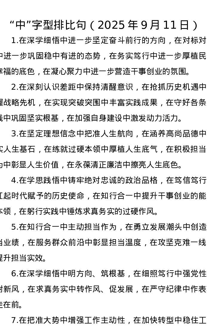“中”字型排比句(2025年9月11日)