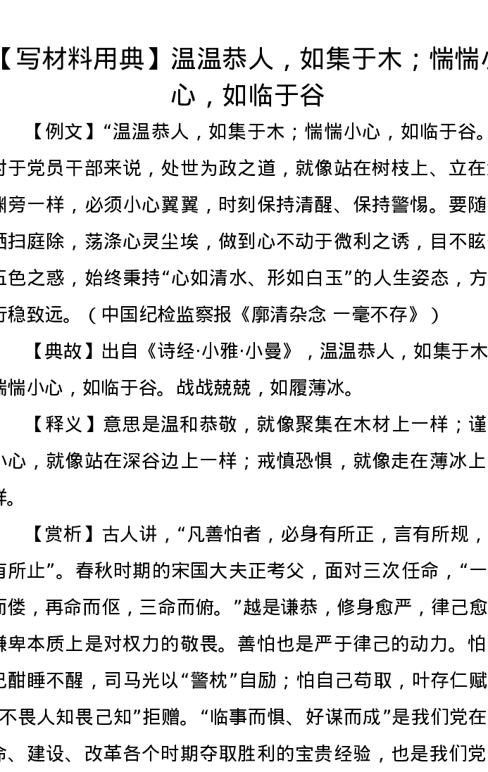 【写材料用典】温温恭人,如集于木;惴惴小心,如临于谷