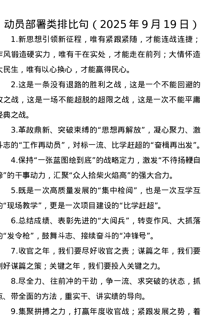 动员部署类排比句(2025年9月19日)
