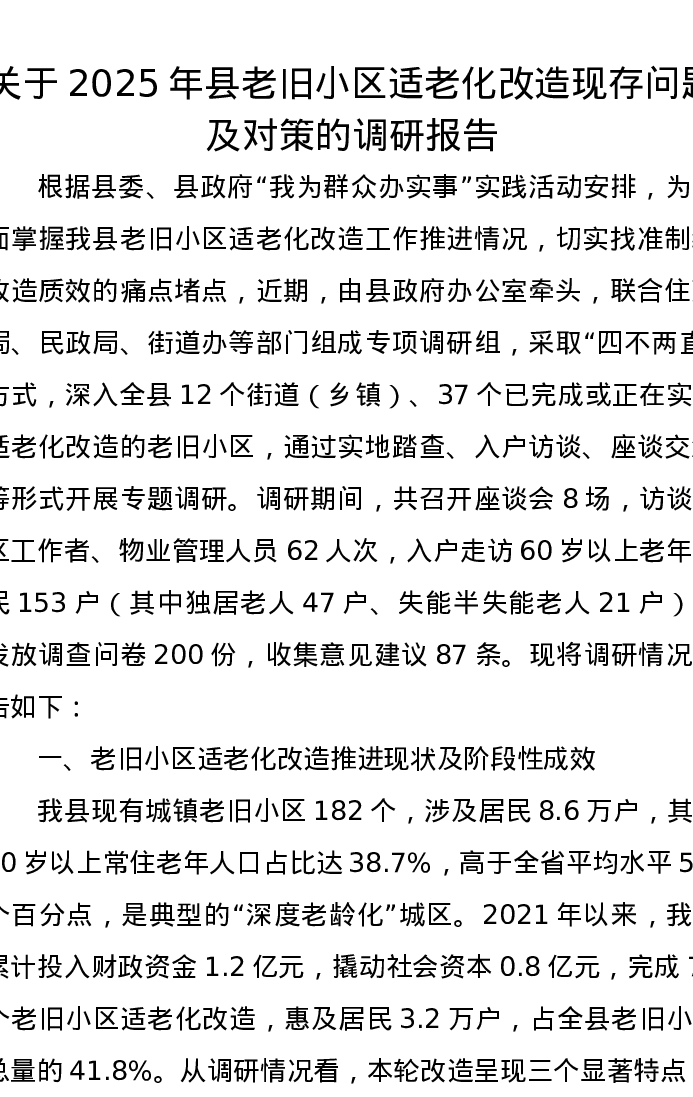 关于2025年县老旧小区适老化改造现存问题及对策的调研报告