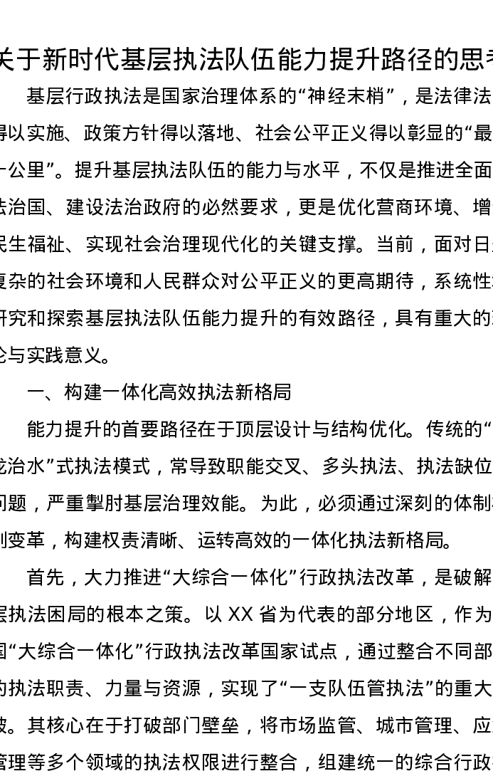 调研报告:关于新时代基层执法队伍能力提升路径的思考