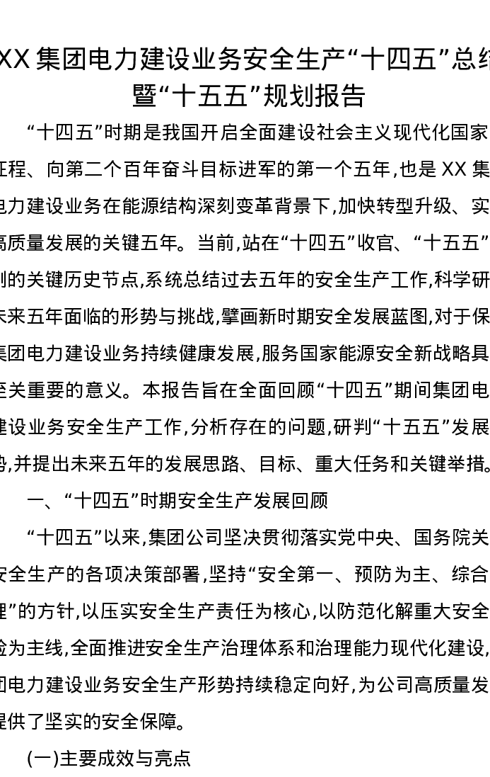 XX集团电力建设业务安全生产“十四五”总结暨“十五五”规划报告