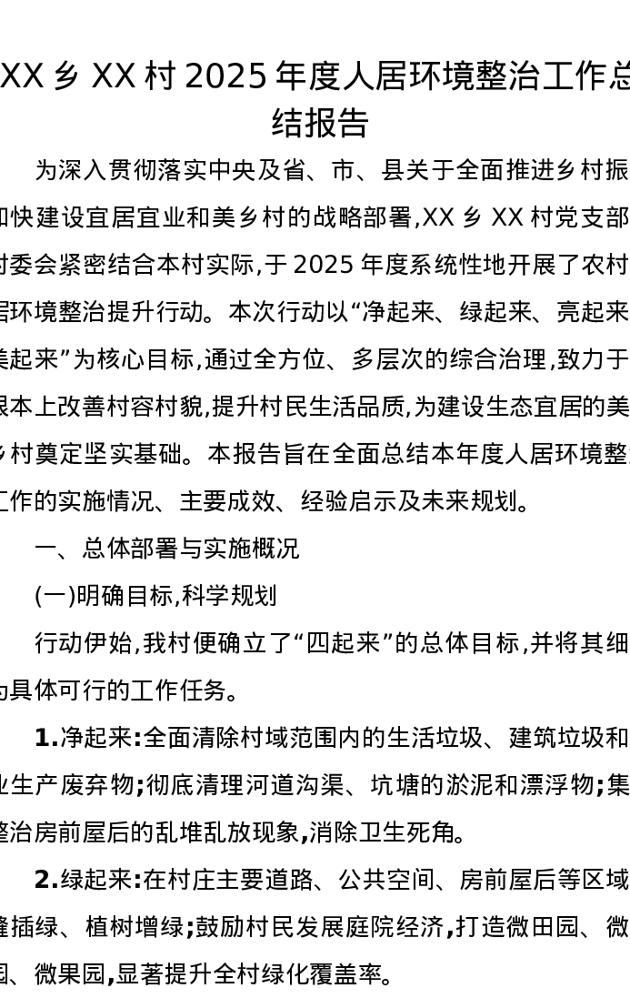 XX乡XX村2025年度人居环境整治工作总结报告