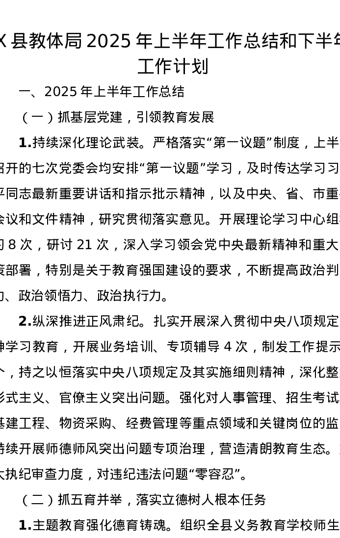 X县教体局2025年上半年工作总结和下半年工作计划