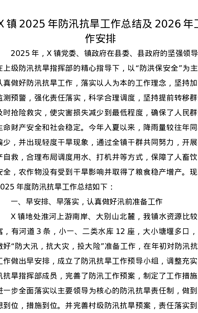 X镇2025年防汛抗旱工作总结及2026年工作安排
