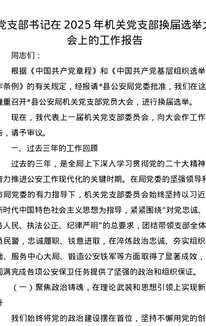 党支部书记在2025年机关党支部换届选举大会上的工作报告