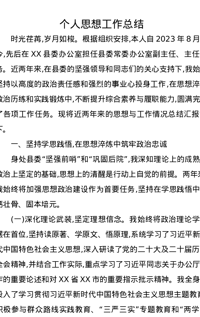个人思想工作总结