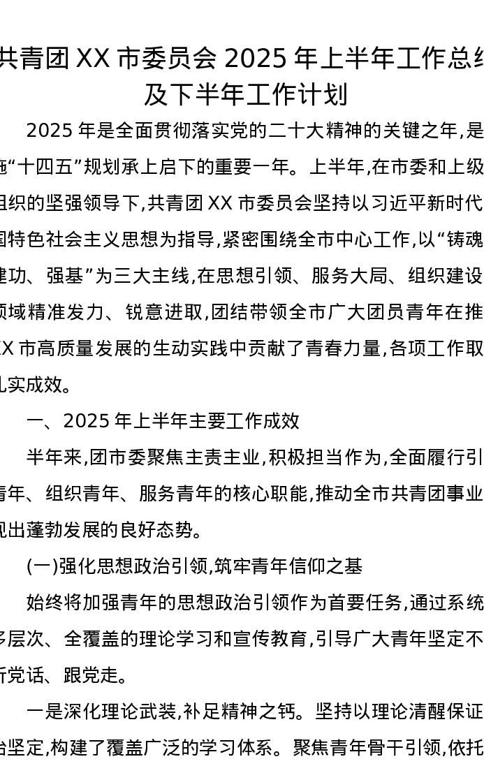 共青团XX市委员会2025年上半年工作总结及下半年工作计划