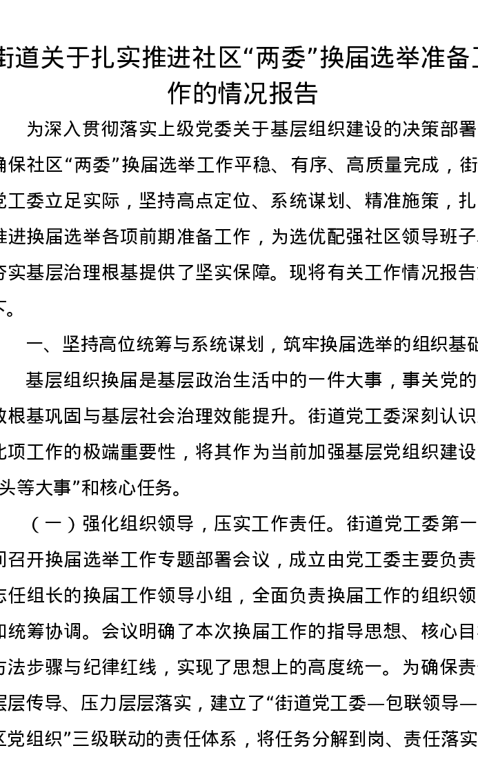 街道关于扎实推进社区“两委”换届选举准备工作的情况报告