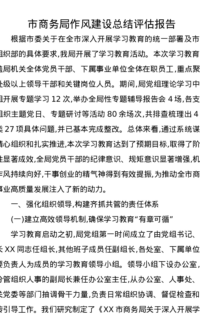 市商务局作风建设总结评估报告