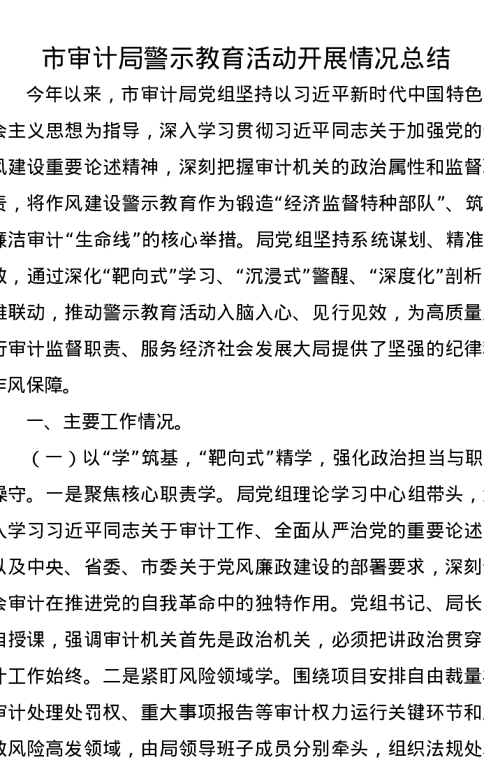 市审计局警示教育活动开展情况总结