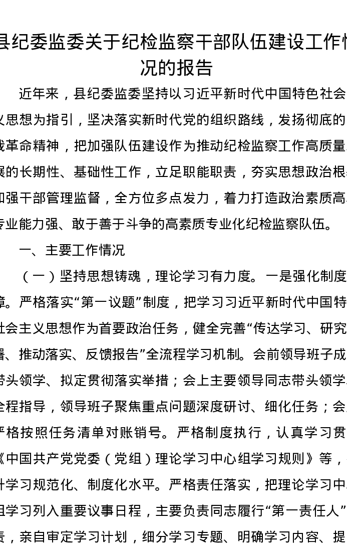 县纪委监委关于纪检监察干部队伍建设工作情况的报告