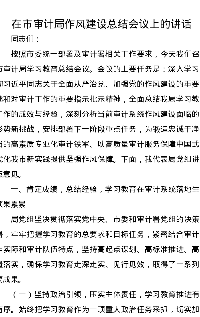 在市审计局作风建设总结会议上的讲话