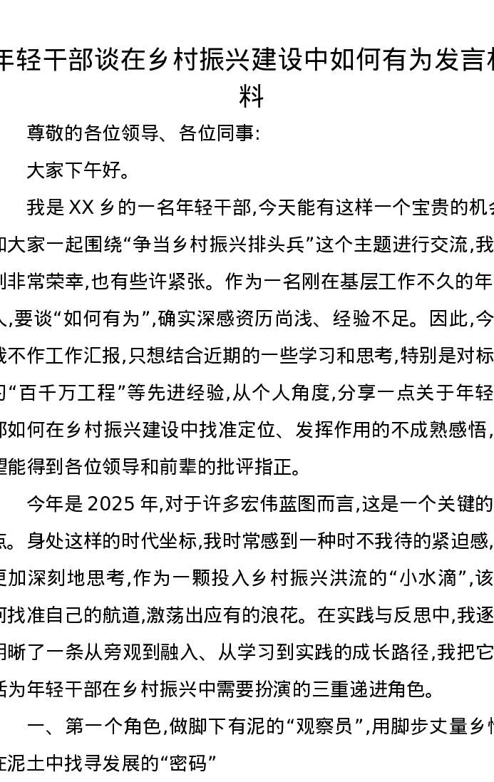 年轻干部谈在乡村振兴建设中如何有为发言材料