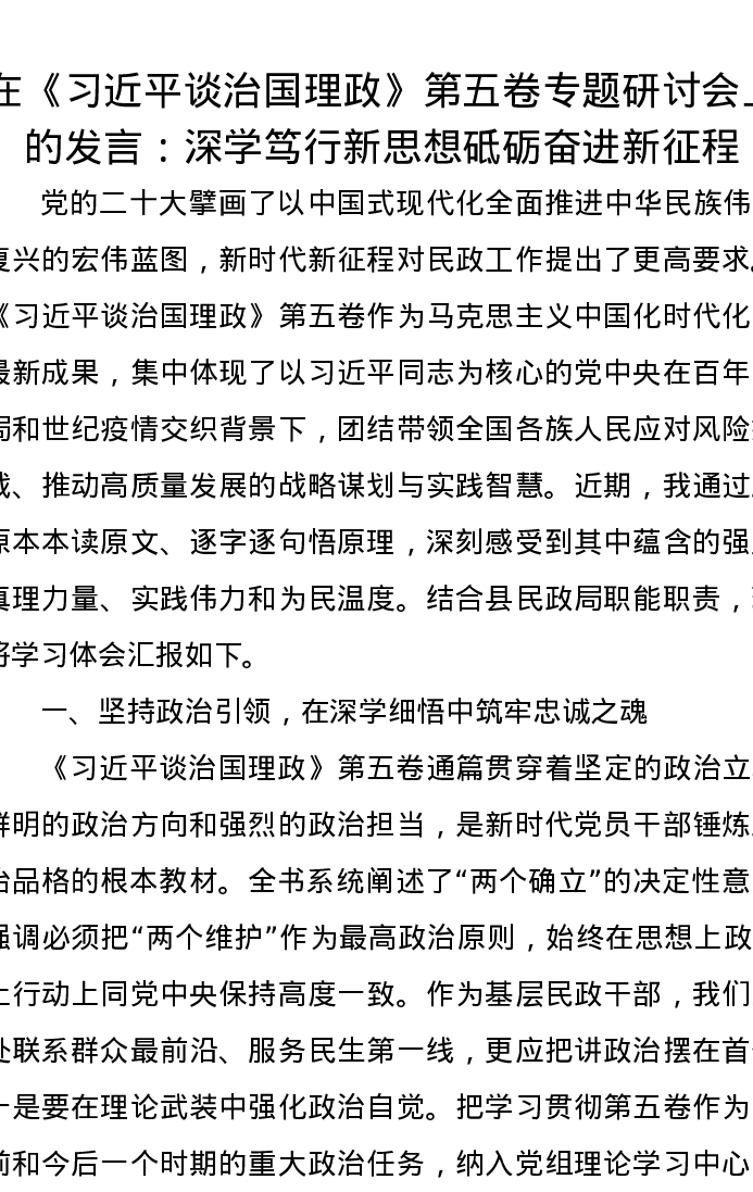 在《习近平谈治国理政》第五卷专题研讨会上的发言:深学笃行新思想 砥砺奋进新征程