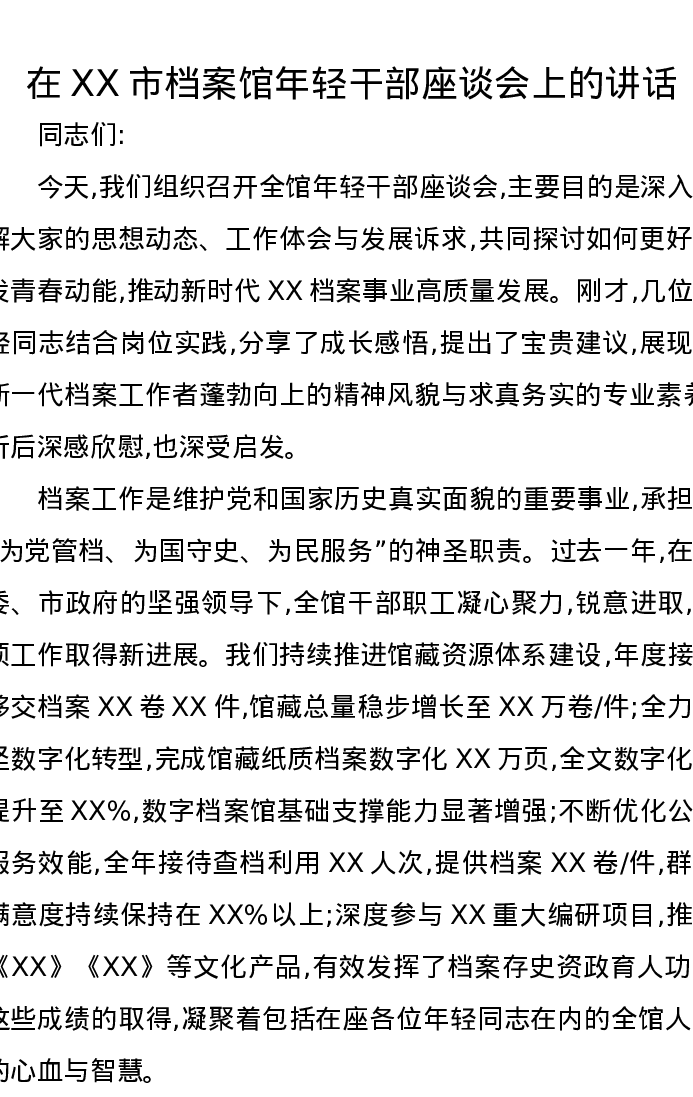 在XX市档案馆年轻干部座谈会上的讲话