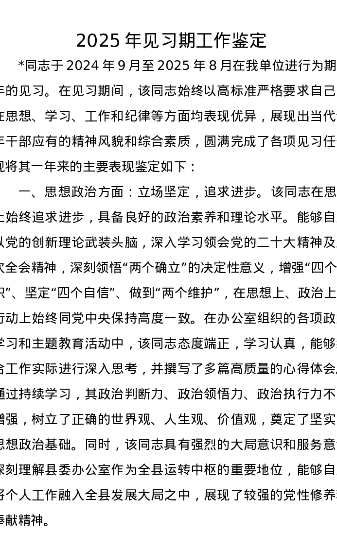 2025年见习期工作鉴定