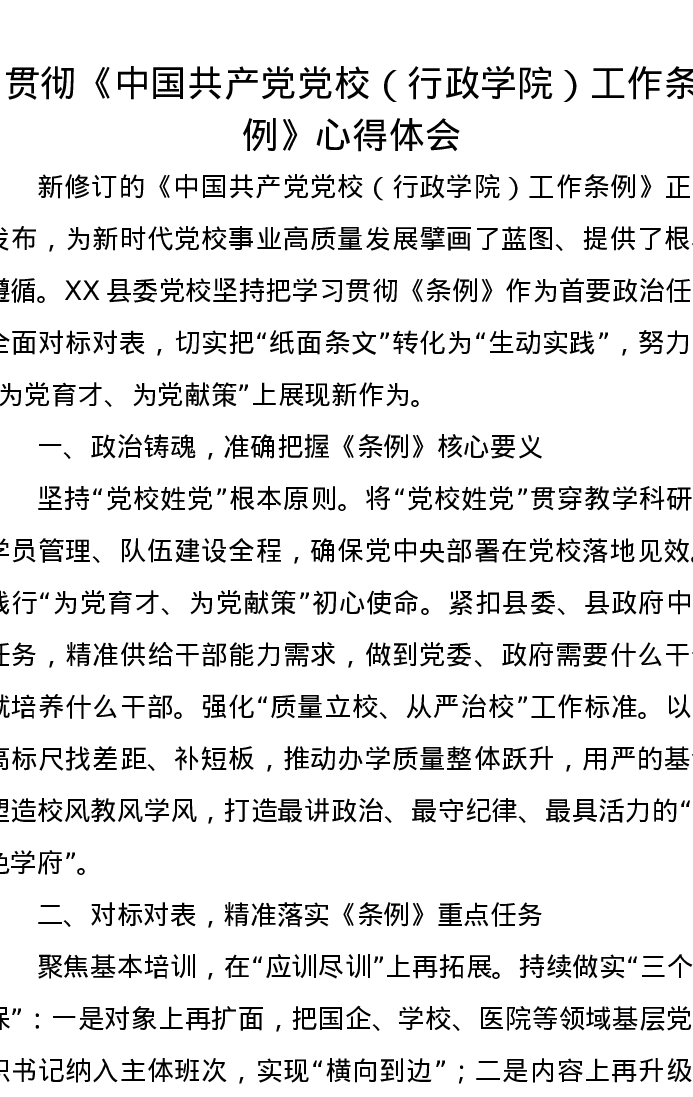 贯彻《中国共产党党校(行政学院)工作条例》心得体会