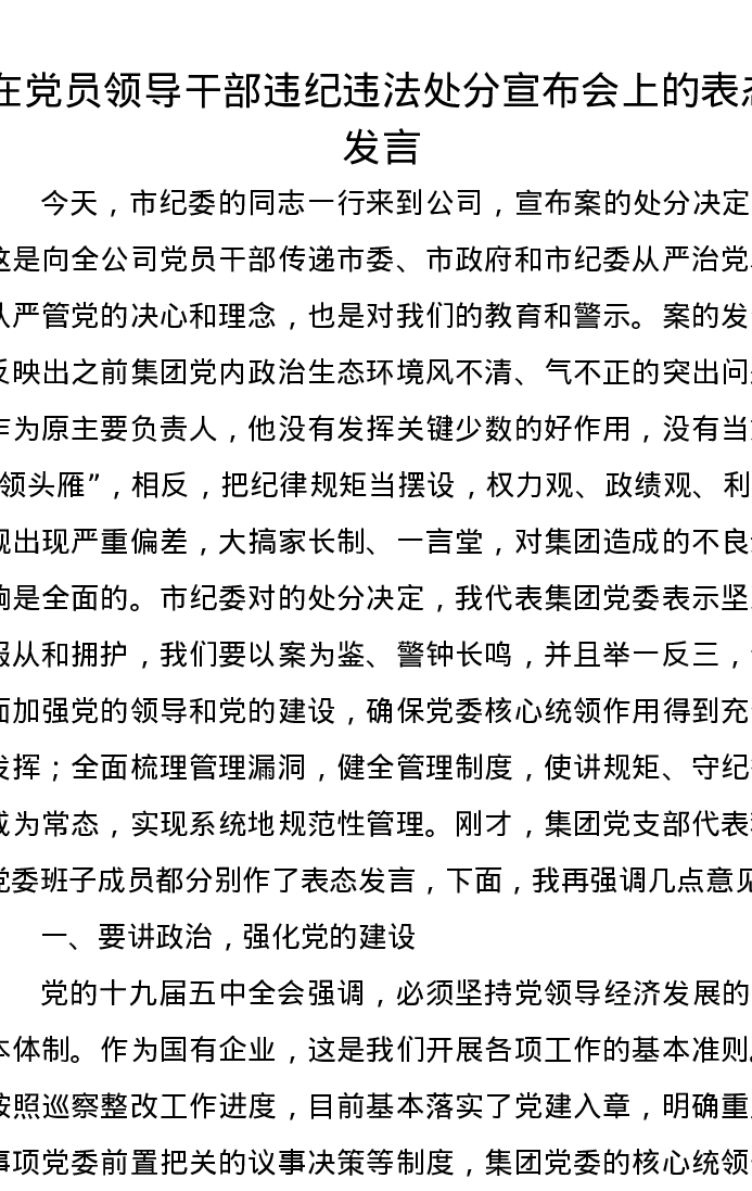 在党员领导干部违纪违法处分宣布会上的表态发言