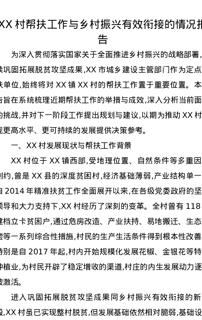 XX村帮扶工作与乡村振兴有效衔接的情况报告