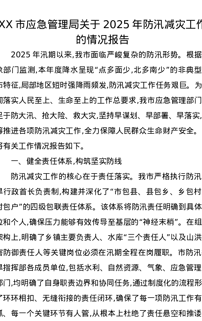 XX市应急管理局关于2025年防汛减灾工作的情况报告