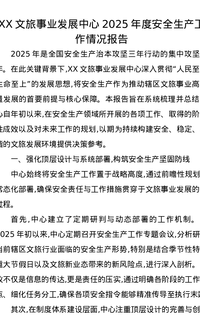 XX文旅事业发展中心2025年度安全生产工作情况报告