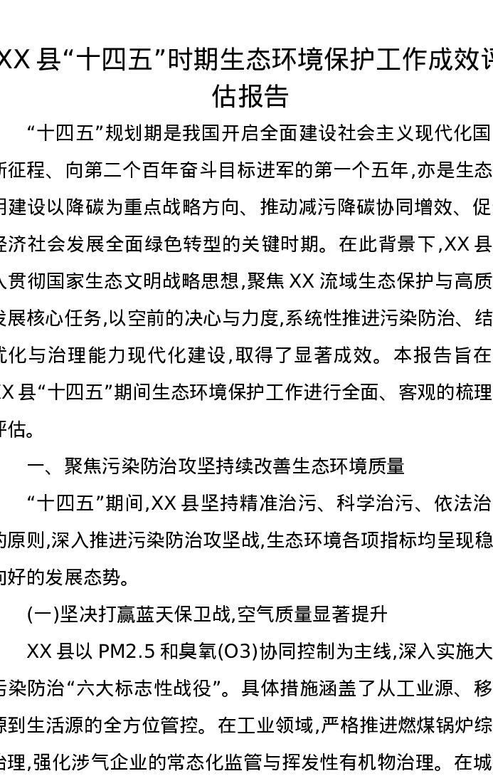 XX县“十四五”时期生态环境保护工作成效评估报告