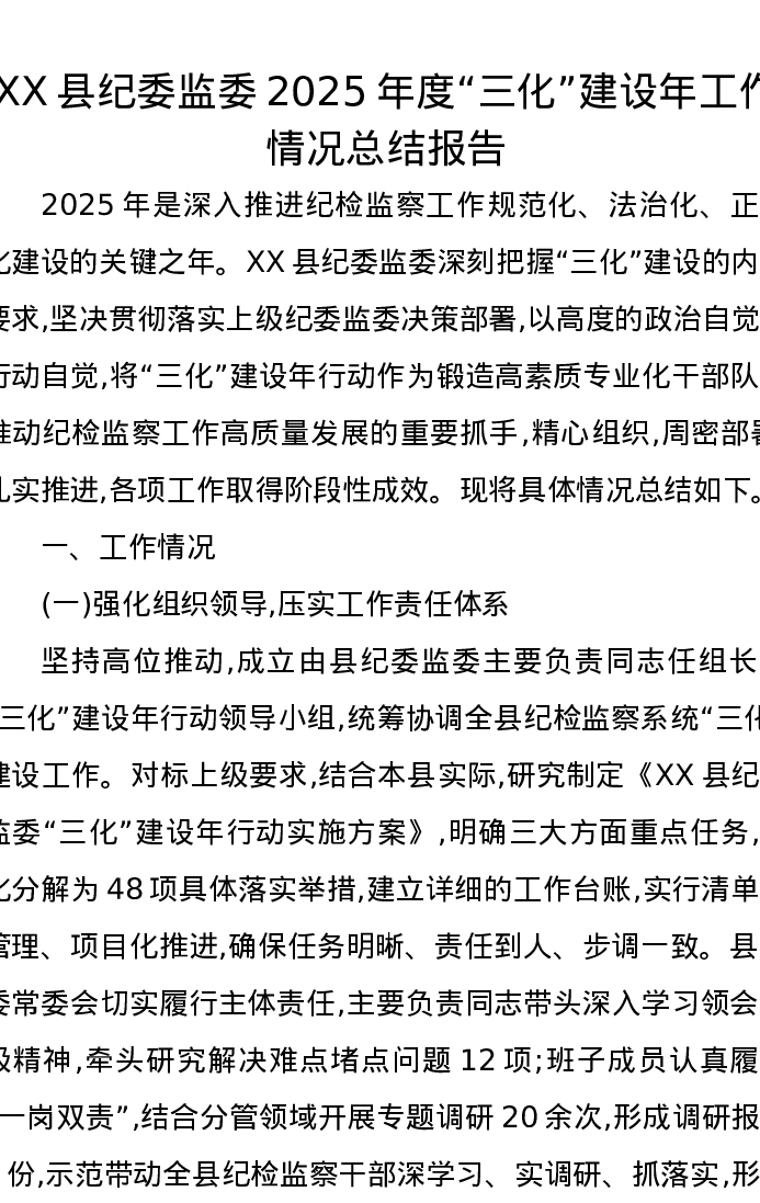 XX县纪委监委2025年度“三化”建设年工作情况总结报告