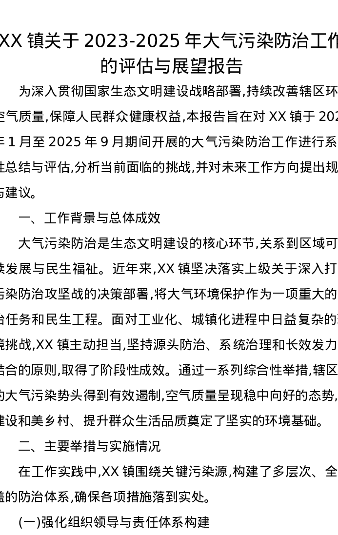 XX镇关于2023-2025年大气污染防治工作的评估与展望报告