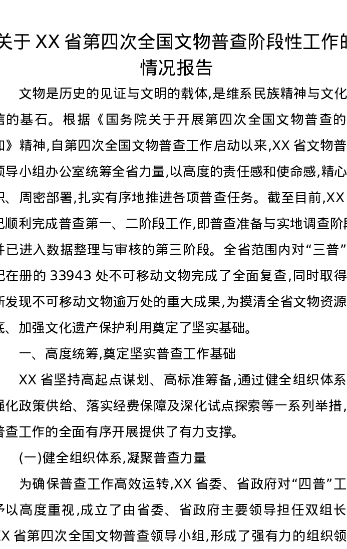 关于XX省第四次全国文物普查阶段性工作的情况报告