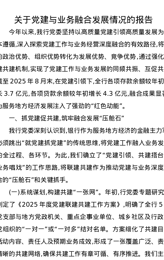 关于党建与业务融合发展情况的报告