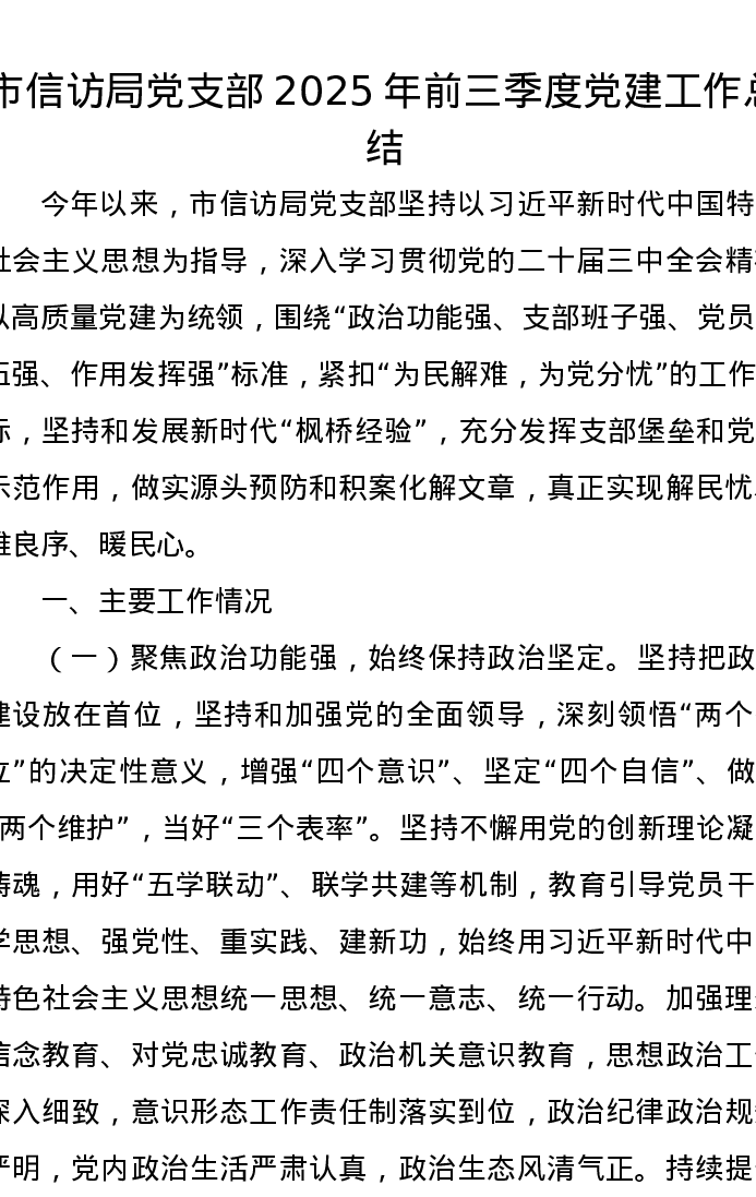 市信访局党支部2025年前三季度党建工作总结