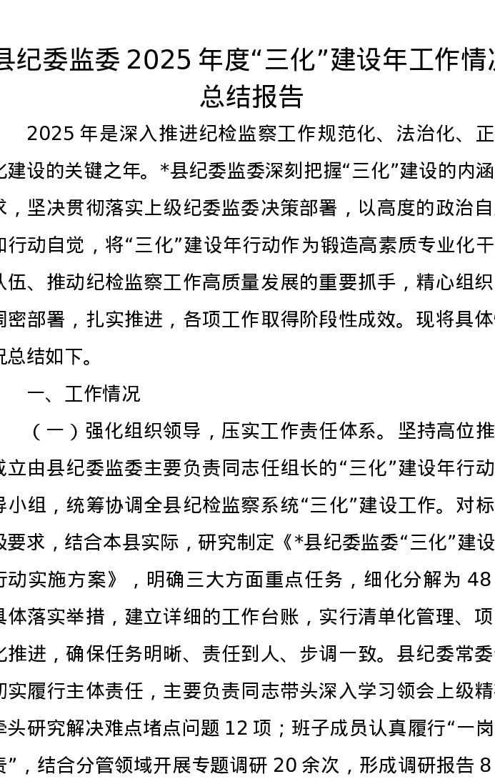 县纪委监委2025年度“三化”建设年工作情况总结报告