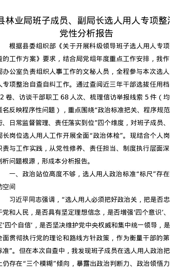 县林业局班子成员、副局长选人用人专项整治党性分析报告