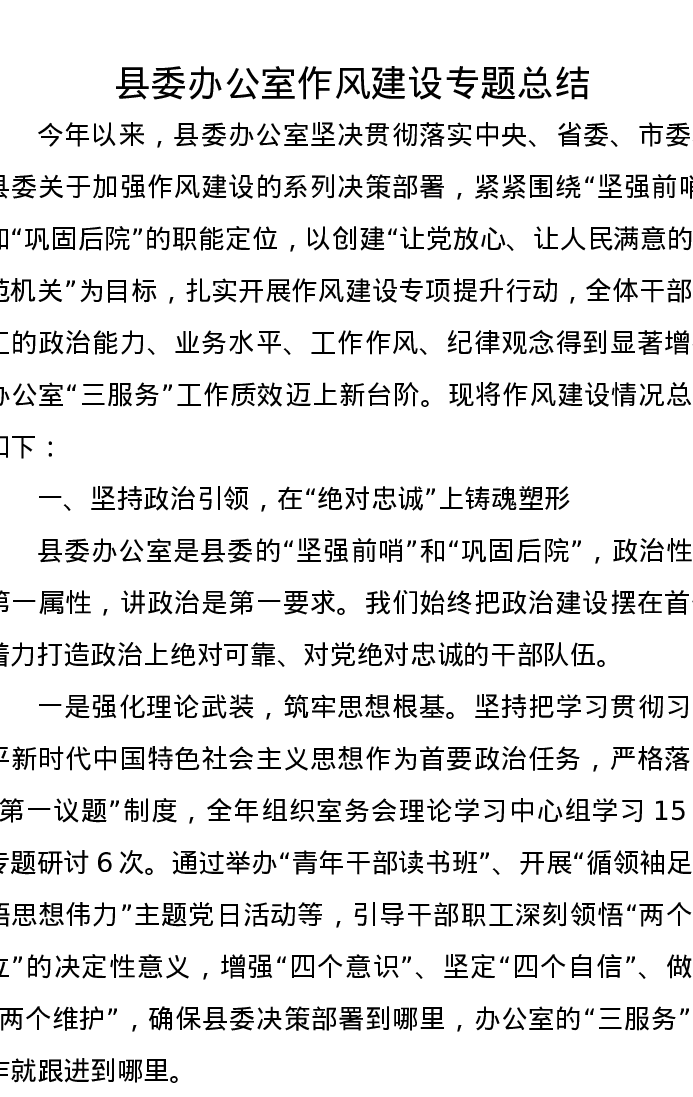 县委办公室作风建设专题总结