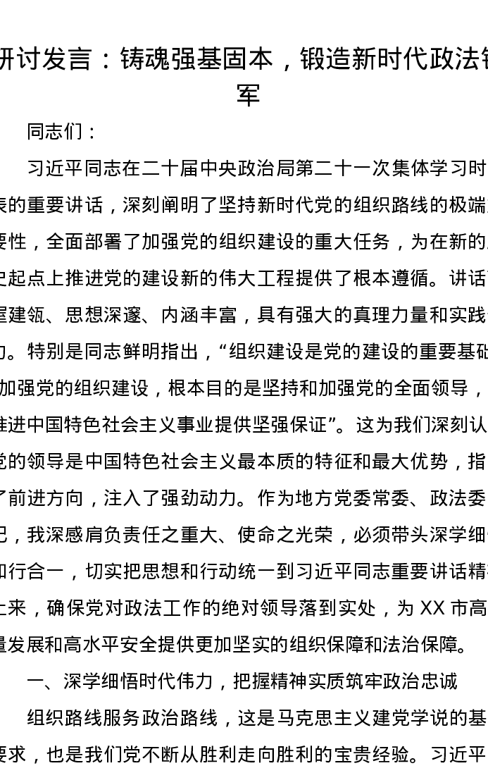 研讨发言:铸魂强基固本,锻造新时代政法铁军