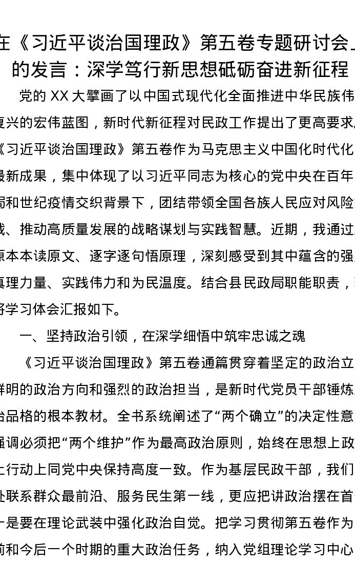 在《习近平谈治国理政》第五卷专题研讨会上的发言