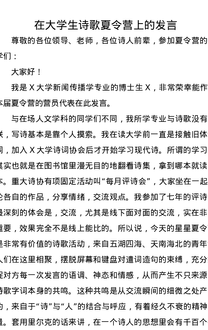 在大学生诗歌夏令营上的发言