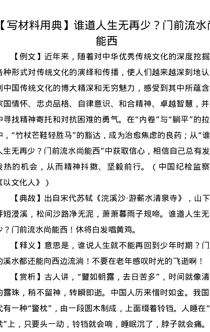 【写材料用典】谁道人生无再少?门前流水尚能西