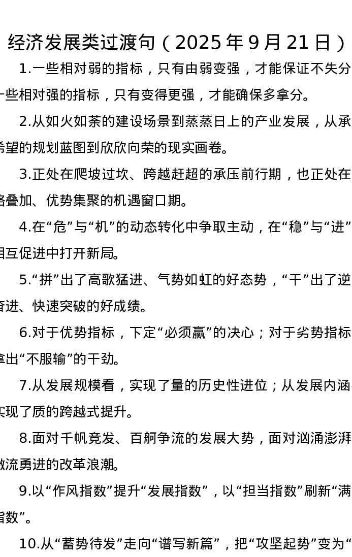 经济发展类过渡句(2025年9月21日)