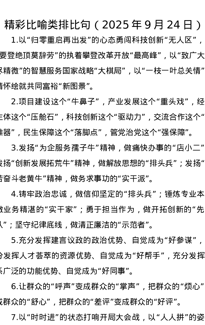 精彩比喻类排比句(2025年9月24日)