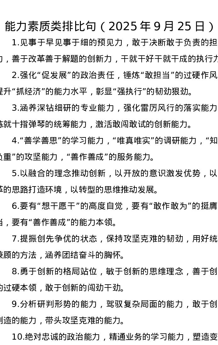 能力素质类排比句(2025年9月25日)
