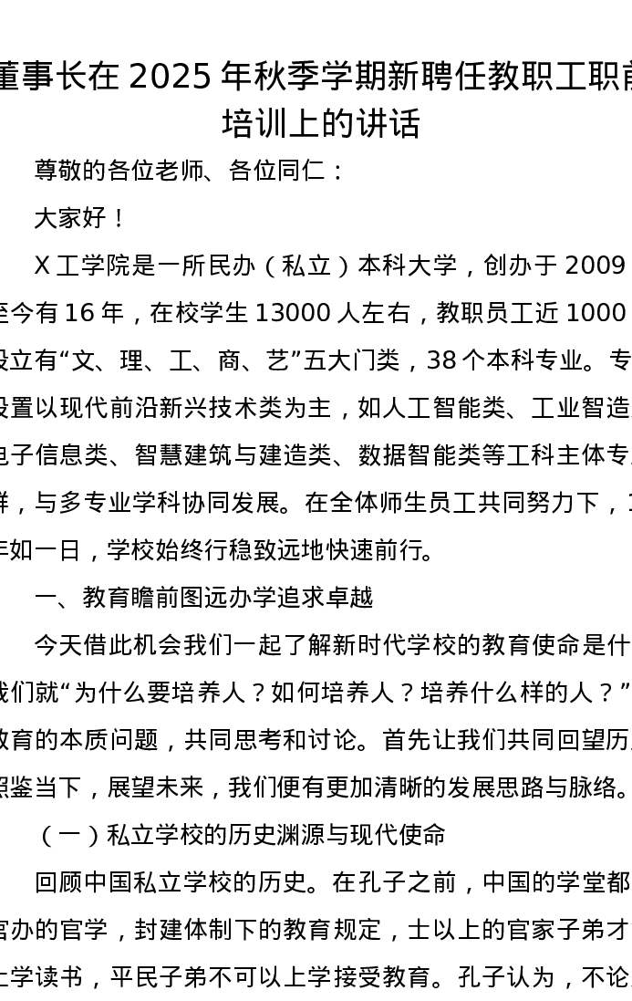 董事长在2025年秋季学期新聘任教职工职前培训上的讲话