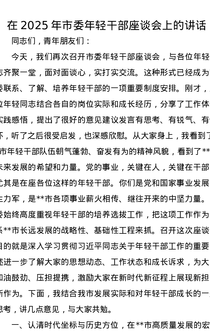 在2025年市委年轻干部座谈会上的讲话