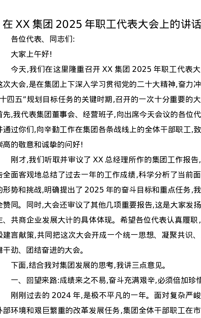 在XX集团2025年职工代表大会上的讲话