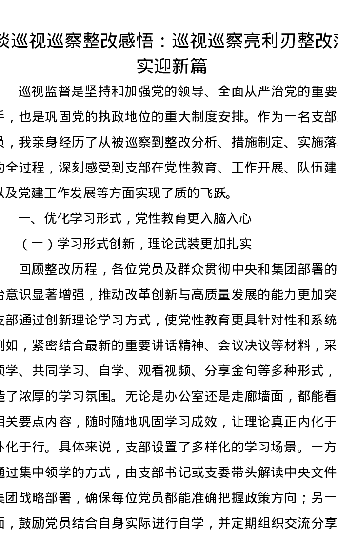 谈巡视巡察整改感悟:巡视巡察亮利刃整改落实迎新篇