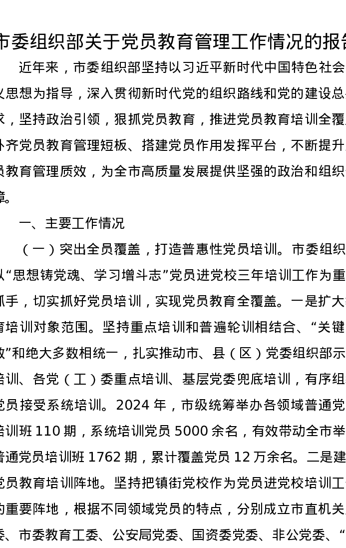 市委组织部关于党员教育管理工作情况的报告