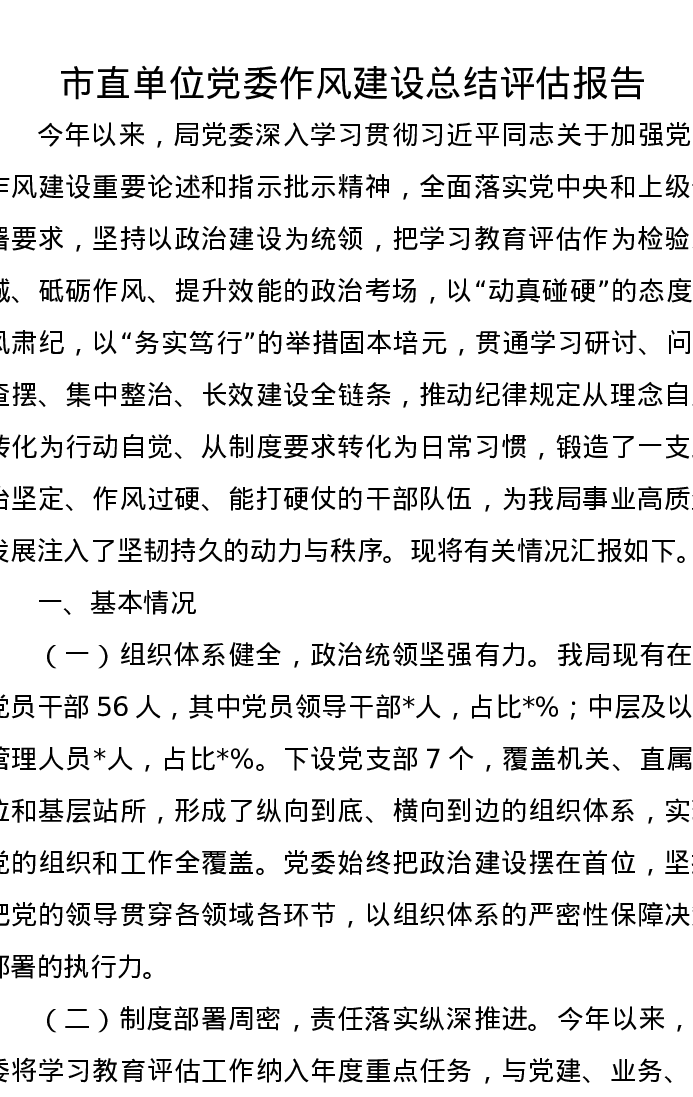 市直单位党委作风建设总结评估报告