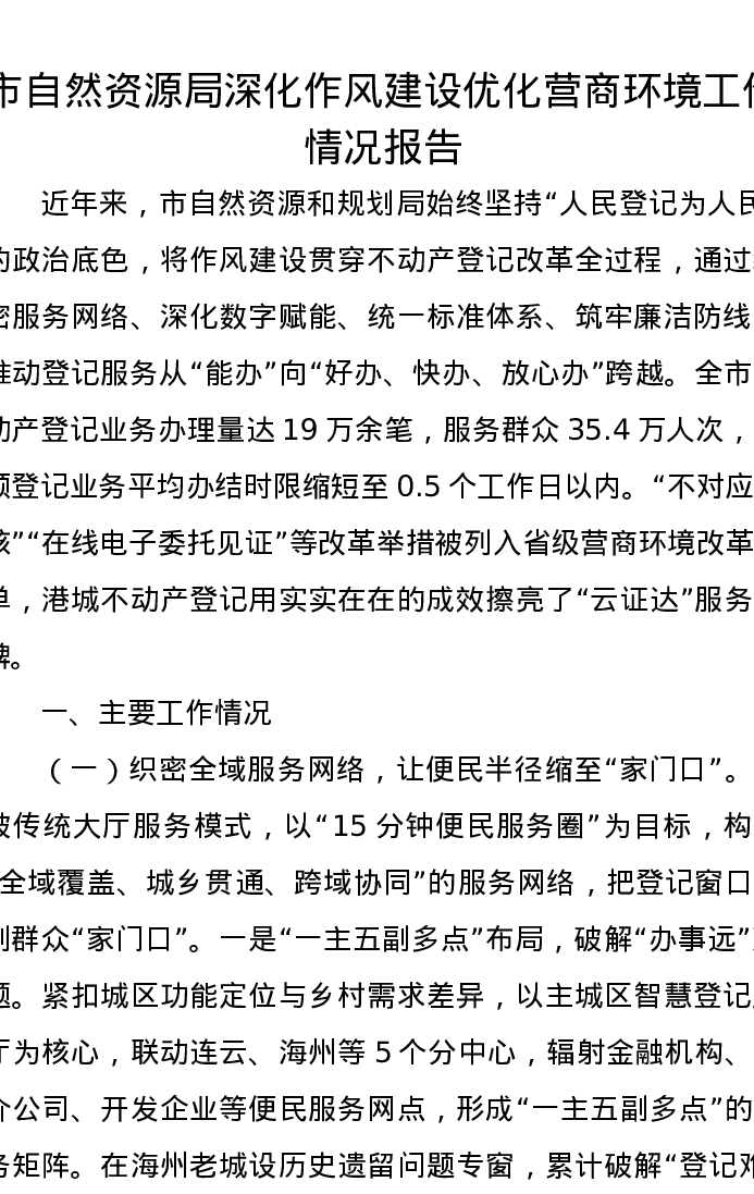市自然资源局深化作风建设优化营商环境工作情况报告